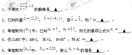 江苏省海门中学09-10学年高一下学期期中考试(数学)(缺答案)