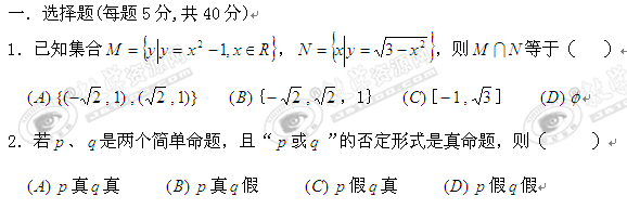 北京市北京五中2011届高三上学期第一次月考(数学文)