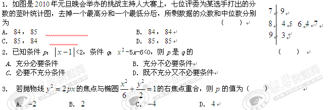 江西省十一县(市)10-11学年高二上学期期中联考试题(数学文)