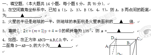 江苏省淮安市南陈集中学10—11学年高二上学期期中考试(数学)