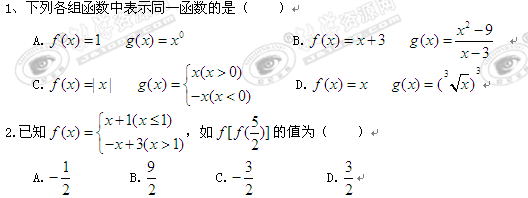 江西省吉水中学10-11学年高一上学期期中考试(数学)缺答案