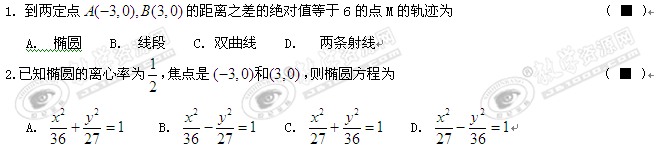 浙江省嘉兴一中10-11学年高二12月月考题(数学)