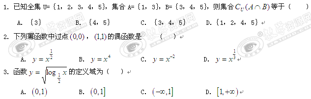 湖北省郧西四中10-11学年高一上学期第三次月考(数学)
