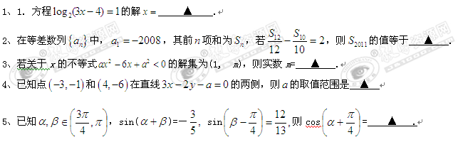 江苏省新沂市第一中学2011届高三上学期阶段性自主测试12(数学)