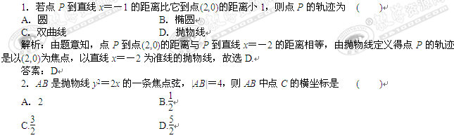 2011年高考数学一轮复习第7章圆锥曲线方程:抛物线