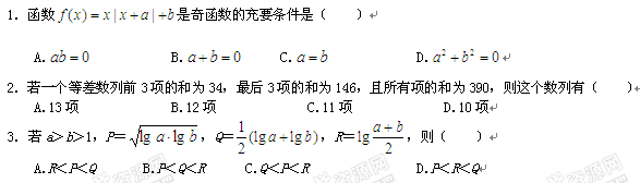 吉林省延边二中10-11学年高二上学期期中考试(数学理)缺答案