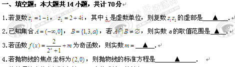 江苏省安宜高级中学10-11年度高三B部上学期期末综合练习(二)(数学)(缺附加题目)