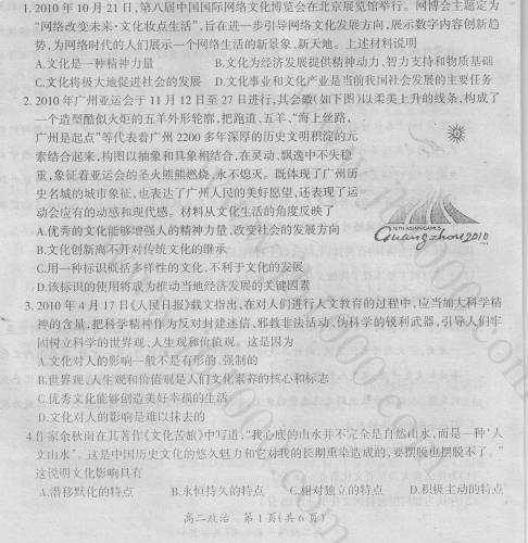 江西省吉安市10-11学年高二上学期期末考试(政治)扫描版