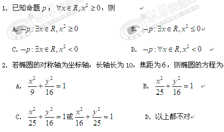 福建省福州市高级中学10-11学年高二上学期期末考试(数学理)