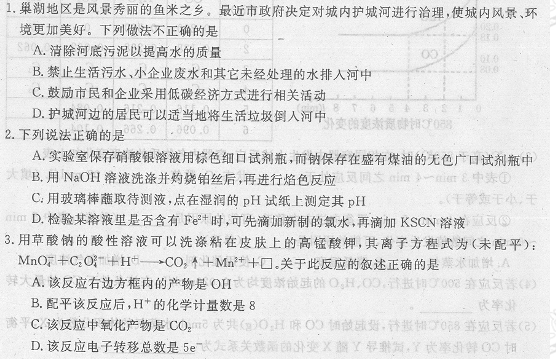 安徽省巢湖市2011届高三第一次教学质量检测(化学)扫描版