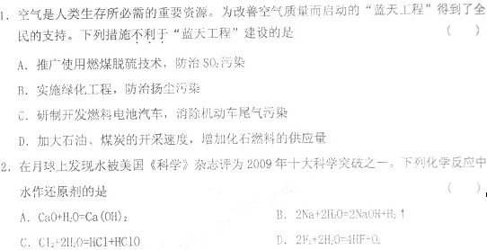 您的位置:教学资源网 >> 试卷 >> 化学试卷