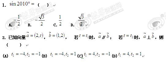 黑龙江省鸡西市第一中学2011届高三上学期期末考试(数学理)