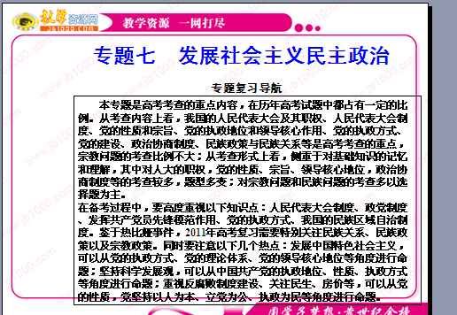 政治:2011年高考二轮复习专题七 《发展社会主义民主政治》课件