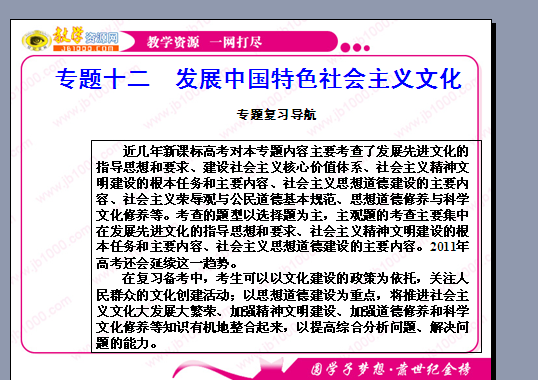 政治:2011年高考二轮复习专题十二《发展中国特色社会主义文化》课件