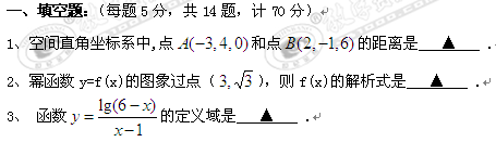 江苏省连云港外国语学校10-11学年度高一上学期期末考试(数学)