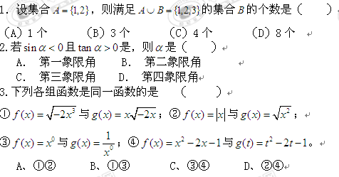 云师大附中大理分校10—11学年高一上学期期末考试模拟题(二)(数学)缺答案