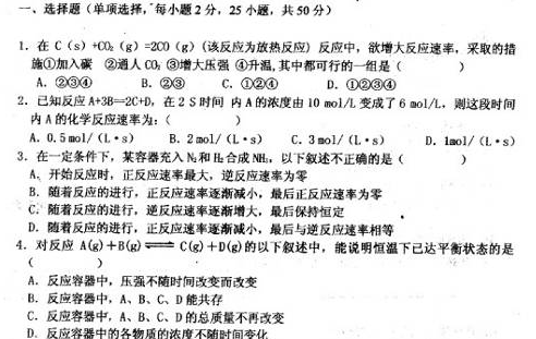 广西柳州三中10-11学年高二上学期期末质量抽测(化学文)(扫描版无答案)