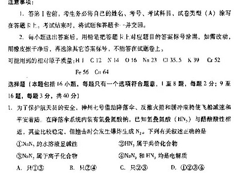 山东省潍坊市2011届高三第一次模拟考试(化学)扫描版