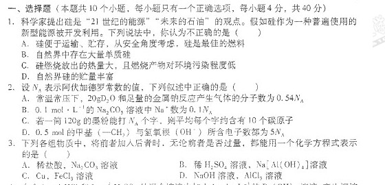 山东省潍坊2011年高考二轮专题训练:常见无机物及其应用(一)扫描版