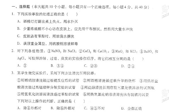 山东省潍坊2011年高考二轮专题训练:化学实验基础检测题(二)扫描版