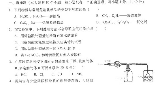 山东省潍坊2011年高考二轮专题训练:化学实验基础检测题(三)扫描版