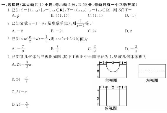 江西省上饶市2011届高三第一次模拟考试(数学文)扫描版