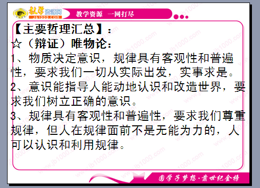 政治:《生活与哲学》主要哲理及主观题复习课件(新人教必修4)