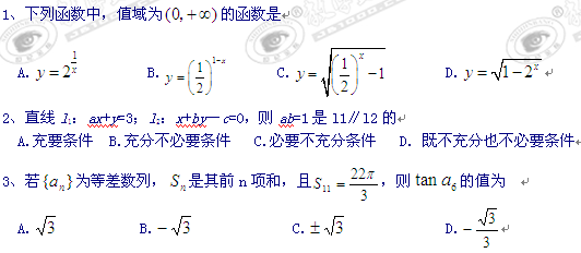 江西省上饶县中学2011届高三第四次月考(数学理)(特)