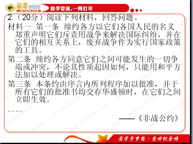 历史:《20世纪以来的战争与和平》课件 二轮复习专题提升之二十五