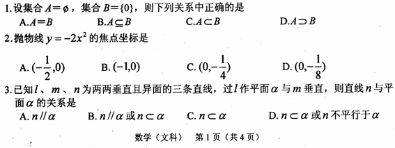 四川省绵阳市高中2011届高三3月月考试题(数学文)扫描版