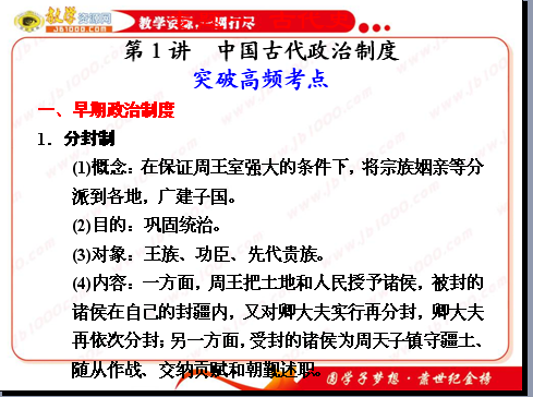 2011届高三历史二轮复习课件:专题一 第1讲 中国古代政治制度(新课标版)
