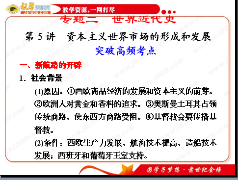 2011届高三历史二轮复习课件:专题二 第5讲 资本主义世界市场的形成和发展(人教新课标)