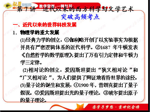 2011届高三历史二轮复习课件:专题二 第7讲 近代以来的西方科学与文学艺术