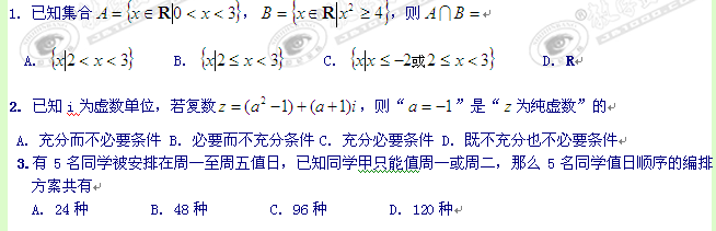 2011年普通高等学校招生全国统一考试模拟试卷三(数学理)(广东卷)
