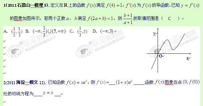 2011年北京市各区一模数学试题分类解析(3):导数及其应用