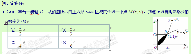 2011年北京市各区一模数学试题分类解析(4):定积分