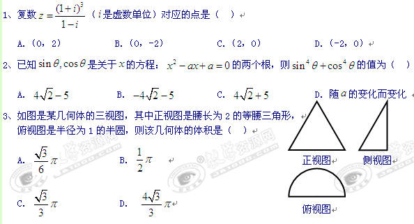 江西省吉安一中2011届高三下学期期中考试(数学理)