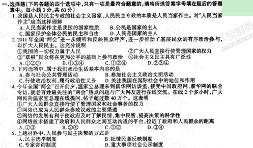 江西省南昌市10-11学年高一下学期期中考试(政治)(扫描版)