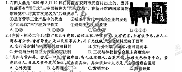 江苏省盐城、南京市2011届高三下学期第三次调研考试(历史)扫描版