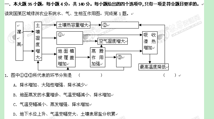 银川一中2022年高三文综第五次月考试卷及答案