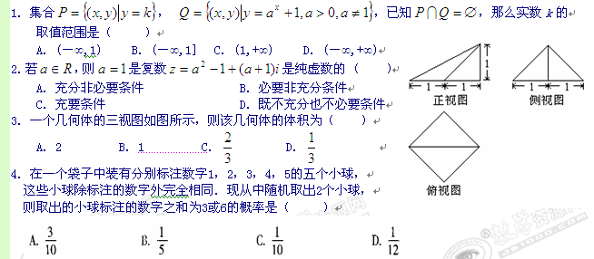 浙江省学军中学2011届高三高考模拟考试题(数学理)