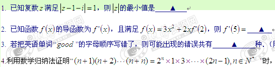 江苏省滨海中学10-11学年高二下学期期中考试试题(数学理)答案不全