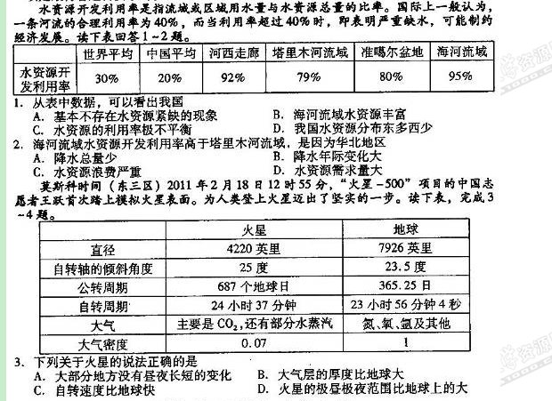 山东省潍坊市2011届高三高考三轮训练模拟试题(五)(文综)扫描版