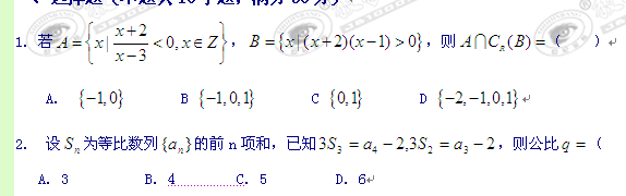江西省九江一中2011届高三高考适应性考试(数学文)