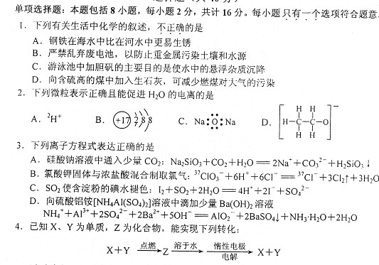 江苏省南通市2011届高三高考最后一卷(化学)扫描版