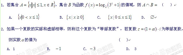 浙江省杭州高级中学10-11学年高二6月教学质量测试题(数学理)缺答案