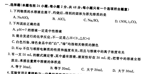 浙江省金华十校10-11学年高二下学期期末试题扫描版(化学)