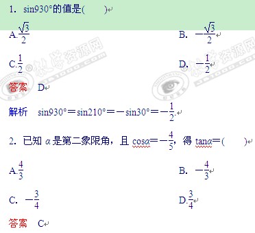 2012届高三一轮复习课时作业(24):同角三角函数的基本关系式与诱导公式