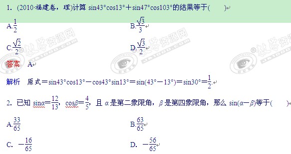 2012届高三一轮复习课时作业(25):两角和与差的正弦、余弦和正切