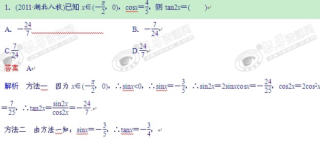 2012届高三一轮复习课时作业(26):二倍角的正弦、余弦和正切